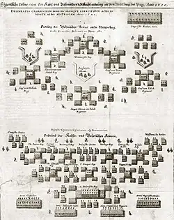 Plan of the battle from Theatrum Europaeum: Bohemians above, Imperial and Bavarian forces below