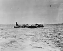 ^A Shōkaku torpedo plane which ditched at Indispensable Reefs on 7 May 1942, photographed on 9 JuneLundstrom 2005b, pp. 205–206; Hoyt 2003, pp. 38–39; Cressman 2000, p. 95; Millot 1974, pp. 60–61; Dull 1978, pp. 130–131; Lundstrom 2006, p. 167. The two Shōkaku scout aircraft, which lingered over the target area trying to assist the strike force in locating the U.S. ships, did not have sufficient fuel to return to their carrier and ditched on the Indispensable Reefs (see photo at right). The two crews were rescued by a Japanese destroyer, perhaps Ariake (Cressman, p. 92), on 7 May. Ariake sighted the two unrecovered Yorktown airmen from the Tulagi strike floating off Guadalcanal, but did not attempt to capture or kill them (Cressman, p. 92).