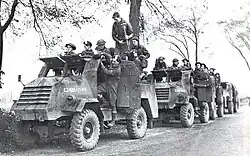 Simonds had planned to commit the 4th Division to assist the 3rd Division with clearing the Breskens Pocket, but problems faced by the 2nd Division forced Simonds to start peeling off units from the 4th Division.[31] On 9 October 1944, the 29th Armoured Reconnaissance Regiment (The South Alberta Regiment) was ordered to "protect the right flank of 2 Division and prevent infiltration between 2 Div and 1 Polish Armd. Div".[31] The next day, Simonds ordered Major general Harry Foster of the 4th Division "to send 4 Cnd Armd Bde to the Antwerp area at the rate of one get a day, beginning 11 Oct".[30]
