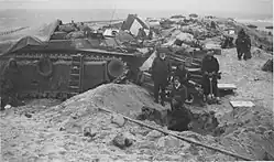 The German officers explained away their retreat by claiming they were being overwhelmed by tanks, but in fact there were only four, belonging to the British Columbia Regiment, operating north of the Leopold canal.[55] The presumed tanks were actually the M10 self-propelled anti-tank guns of the 3rd Canadian Anti-Tank Regiment which provided fire support to the Canadian infantry.[55] Joining the Canadians on 20 October were the 157th Highland Light Infantry Brigade of the 52nd Division, which allowed Spry to group the three brigades of the 3rd Division for the final push.[55]