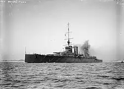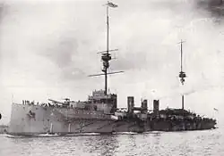 In the 1890s, new Krupp steel armour meant that it was now possible to give a cruiser side armour which would protect it against the quick-firing guns of enemy battleships and cruisers alike.[6] In 1896–97 France and Russia, who were regarded as likely allies in the event of war, started to build large, fast armoured cruisers taking advantage of this. In the event of a war between Britain and France or Russia, or both, these cruisers threatened to cause serious difficulties for the British Empire's worldwide trade.[7]