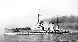 By 1911 Germany had built battlecruisers of her own, and the superiority of the British ships could no longer be assured. Moreover, the German Navy did not share Fisher's view of the battlecruiser. In contrast to the British focus on increasing speed and firepower, Germany progressively improved the armour and staying power of their ships to better the British battlecruisers.[42] Von der Tann, begun in 1908 and completed in 1910, carried eight 11.1-inch guns, but with 11.1-inch (283 mm) armour she was far better protected than the Invincibles. The two Moltkes were quite similar but carried ten 11.1-inch guns of an improved design.[43] Seydlitz, designed in 1909 and finished in 1913, was a modified Moltke; speed increased by one knot to 26.5 knots (49.1 km/h; 30.5 mph), while her armour had a maximum thickness of 12 inches, equivalent to the Helgoland-class battleships of a few years earlier. Seydlitz was Germany's last battlecruiser completed before World War I.[44]