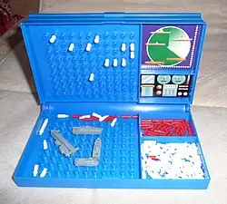 Parallels have been drawn to E. I. Horsman's 1890 game Basilinda,[1] and the game is said to have been played by Russian officers before World War I.[3] In 1907 the game playing was mentioned in the diary of Russian poet Ryurik Ivnev.[4] The first commercial version of the game was Salvo, published in 1931 in the United States by the Starex company. Other versions of the game were printed in the 1930s and 1940s, including the Strathmore Company's Combat: The Battleship Game, Milton Bradley's Broadsides: A Game of Naval Strategy and Maurice L. Freedman's Warfare Naval Combat. Strategy Games Co. produced a version called Wings which pictured planes flying over the Los Angeles Coliseum. All of these early editions of the game consisted of pre-printed pads of paper.[1]