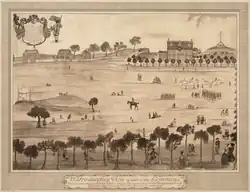 The first European settler was William Blaxton, also spelled Blackstone. In 1625 he built a house and orchard on Beacon Hill's south slope, roughly at the location of Beacon and Spruce street. The settlement was a "preformal arrangement". In 1630 Boston was settled by the Massachusetts Bay Company.[6][19] The southwestern slope was used by the city for military drills and livestock grazing. In 1634 a signal beacon was established on the top of the hill.[11][19] Sailors and British soldiers visited the north slope of Beacon Hill during the 17th and 18th centuries. As a result, it became an "undesirable" area for Boston residents.[6] "Fringe activities" occurred on "Mount Whoredom", the backslope of Beacon Hill.[20][nb 2]