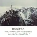 A ship in a force 12 ("hurricane-force") storm at sea, the highest rated on the Beaufort scale