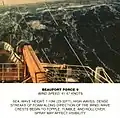 Data graphic showing Beaufort wind force in scale units, knots and metres/second