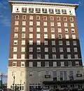 Beaumont has 8 buildings over 100 feet (30 m) tall, the tallest being the Edison Plaza, which is 254 feet (77 m) tall.[33] The old Edson Hotel, built in 1928 is nearly the same height at 240 feet (73 m).[34] One of the most prominent downtown buildings is the 15-story San Jacinto Building. Built in 1921, it sports one of the largest four faced clock towers in the nation, each dial being 17 feet (5.2 m) in diameter.[35] In 1922 the 11-story Hotel Beaumont was built across the street from the San Jacinto. The Hotel Beaumont bears a resemblance to the old Winecoff Hotel in Atlanta.