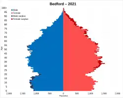 - ^ a b c UK Census (2011). "Local Area Report – Bedford Built-up Area (E34004993)". Nomis. Office for National Statistics. Retrieved 26 July 2019.