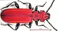 The longest beetle is the Hercules beetle Dynastes hercules, with a maximum overall length of at least 16.7 cm (6.6 in) including the very long pronotal horn. The smallest recorded beetle and the smallest free-living insect (as of 2015), is the featherwing beetle Scydosella musawasensis which may measure as little as 325 μm in length.[25]