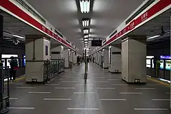 Each station has two to fifteen ticket vending machines.[18] Ticket vending machines on all lines can add credit to Yikatong cards.[19] Single-ride tickets take the form of an RFID-enabled flexible plastic card.
