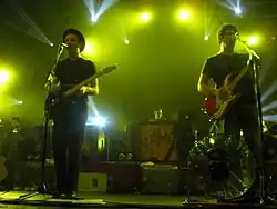 ![]() Members of Belle and Sebastian, pictured sometime between 2005 and 2006. Left to right: Mick Cooke, Richard Colburn, Bobby Kildea, Chris Geddes, Stevie Jackson, Sarah Martin, Stuart Murdoch | |