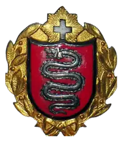 The blazon of the municipal coat of arms is an erect serpent in silver on a red field. The fabulous animal is called in Italian "Biscione". This animal, which can also be found on the arms of the Alfa Romeo car company, is linked with the Visconti of Milan, who were feudal lords of Bellinzona in the 14th and 15th centuries.[9]