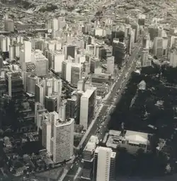 In the 1940s a young Oscar Niemeyer designed the Pampulha Neighbourhood to great acclaim, a commission he got thanks to then-mayor and soon-to-be-president Juscelino Kubitschek. These two men are largely responsible for the wide avenues, large lakes, parks, and jutting skylines that characterize the city today.[14] A 1949 American government film favorably reviewed the planning and building of the city.[15]