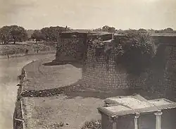 After the fall of the Vijayanagara Empire in 1565 CE in the Battle of Talikota, Kempe Gowda declared independence. His successor, Kempe Gowda II, built four towers to mark the boundary of the town.[34] In 1638 CE, a Adil Shahi army led by Ranadulla Khan and Shahaji Bhonsle (father of Shivaji) defeated Kempe Gowda III, and the region became a jagir (feudal estate) of Shahaji.[32] In 1639 CE, Shahaji ordered the reconstruction of the town and built large fortifications, and new reservoirs to solve the water shortage in the region.[32][33] In 1687 CE, Mughal general Kasim Khan, under orders from Aurangzeb, defeated Ekoji I, the son of Shahaji, and leased the town to Chikkadevaraja Wodeyar (1673–1704 CE), the then ruler of the Kingdom of Mysore.[32] After the death of Krishnaraja Wodeyar II in 1759 CE, Hyder Ali, Commander-in-Chief of the Mysore Army, proclaimed himself the ruler of the Mysore kingdom. He built the Delhi and Mysore gates at the northern and southern ends of the city in 1760 CE.[35] The kingdom later passed to Hyder Ali's son Tipu Sultan, and the Lal Bagh garden was established around 1760 CE.[36] During the period, the city developed into a commercial and military centre of strategic importance.[33]