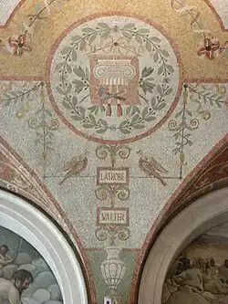For his architectural accomplishments, Benjamin Latrobe is honored, together with Thomas U. Walter, in a ceiling mosaic in the East Mosaic Corridor at the entrance to the Main Reading Room of the Library of Congress.