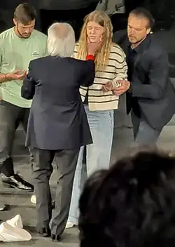 At one Canadian service, hidden cameras showed a mother who was carrying her muscular dystrophy-afflicted daughter, Grace, being stopped by two screeners when they attempted to get into the line for a possible blessing from Hinn. The screeners asked the mother if Grace had been healed, and when the mother replied in the negative, they were told to return to their seats; the pair got out of line, but Grace, wanting "Pastor Benny to pray for [her]", asked her mother to support her as she tried to walk as a show of "her faith in action", according to the mother. After several unsuccessful attempts at walking, the pair left the arena in tears, both mother and daughter visibly upset at being turned aside and crying as they explained to the undercover reporters that all Grace had wanted was for Hinn to pray for her, but the staffers rushed them out of the line when they found out Grace had not been healed.[1] A week later at a service in Toronto, Baptist evangelist Justin Peters who wrote his Masters in Divinity thesis on Hinn[38] and has attended numerous Hinn crusades since 2000 as part of his research for his thesis and for a seminar he developed about the Word of Faith movement entitled A Call for Discernment,[39] also demonstrated to the hidden cameras that "people who look like me"—Peters has cerebral palsy, walks with arm-crutches, and is obviously and visibly disabled—"are never allowed on stage ... it's always somebody who has some disability or disease that cannot be readily seen." Like Grace and her mother, Peters was quickly intercepted as he came out of the wheelchair section (there is one at every crusade, situated at the back of the audience far away from the stage and never filmed for Hinn's TV show) in an attempt to join the line of those waiting to go onstage, and was told to take a seat.[1]