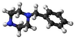 BZP was first synthesized by Burroughs Wellcome & Company in 1944.[11] It is often claimed that it was originally synthesized as a potential antihelminthic (anti-parasitic) agent for use in farm animals,[12] but its synthesis is thought to predate their interest in piperazines as antihelminthics.[11] Even so, the majority of the early work with the piperazines were investigations into their potential use as antihelminthics, with the earliest clinical trials in the literature relating to piperazine being articles in the British Medical Journal in the 1950s.[13][14] It was discovered that BZP had side effects and was largely abandoned as a worm treatment. It next appears in the literature in the 1970s when it was investigated as a potential antidepressant medication,[11] but rejected when research reported that BZP had amphetamine-like effects and was liable to abuse. The study suggested that BZP "should be placed under statutory control similar to those regulating the use of amphetamine".[15]