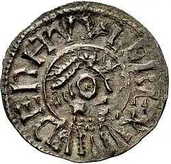 Beorhtwulf (Old English: [ˈbeorˠxtwuɫf], meaning "bright wolf"; also spelled Berhtwulf; died 852) was King of Mercia, a kingdom of Anglo-Saxon England, from 839 or 840 to 852. His ancestry is unknown, though he may have been connected to Beornwulf, who ruled Mercia in the 820s. Almost no coins were issued by Beorhtwulf's predecessor, Wiglaf, but a Mercian coinage was restarted by Beorhtwulf early in his reign, initially with strong similarities to the coins of Æthelwulf of Wessex, and later with independent designs. The Vikings attacked within a year or two of Beorhtwulf's accession: the province of Lindsey was raided in 841, and London, a key centre of Mercian commerce, was attacked the following year. Another Viking assault on London in 851 "put Beorhtwulf to flight", according to the Anglo-Saxon Chronicle; the Vikings were subsequently defeated by Æthelwulf. This raid may have had a significant economic impact on Mercia, as London coinage is much reduced after 851.