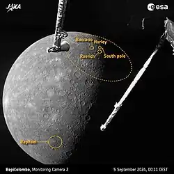 - ^ "BepiColombo's first views of Mercury". www.esa.int. Retrieved 3 September 2025.