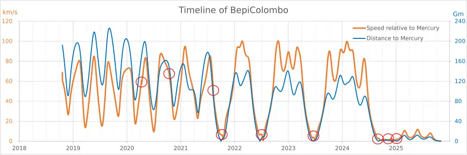 - ^ a b "BepiColombo arrival at Mercury timeline". ESA. Retrieved 4 January 2025.
