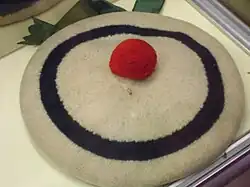 A beret (UK: /ˈbɛreɪ/ BERR-ay,[1] US: /bəˈreɪ/ bə-RAY;[2] French: béret [beʁɛ]; Basque: txapel [t͡ʃa.pel]; Spanish: boina [ˈbojna]) is a soft, round, flat-crowned cap made of hand-knitted wool, crocheted cotton, wool felt,[3] or acrylic fibre.