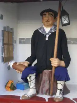 Berets came to be popularised across Europe and other parts of the world as typical Basque headgear, as reflected in their name in several languages (e.g. béret basque in French; Baskenmütze in German; Basco in Italian; Tascu/Birritta in Sicilian; or baskeri in Finnish), while the Basques themselves use the words txapela or boneta. They are very popular and common in the Basque Country. The colours adopted for folk costumes varied by region and purpose: black and blue are worn more frequently than red and white, which are usually used at local festivities. The people of Aragon and the Basque country adopted red berets while the black beret became the common headgear of workers in both Spain and France.[3]