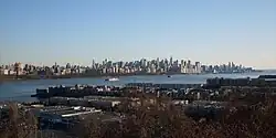 ![]() Atop the Hudson Palisades in Englewood Cliffs, overlooking the Hudson River, the George Washington Bridge, and the skyscrapers of Midtown Manhattan | |