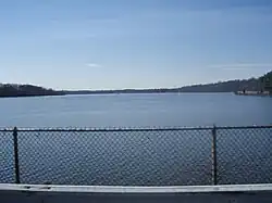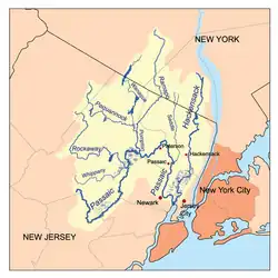 The damming of the Hackensack River and a tributary, the Pascack Brook, produced three reservoirs in the county, Woodcliff Lake Reservoir (which impounds one billion gallons of water), Lake Tappan (3.5 billion gallons), and Oradell Reservoir, which allows United Water to provide drinking water to 750,000 residents of North Jersey, mostly in Bergen and Hudson counties.[49] The Hackensack River drains the eastern portion of the county through the New Jersey Meadowlands, a wetlands area in the southern portion of the county. The central portion is drained by the Saddle River and the western portion is drained by the Ramapo River. Both of these are tributaries of the Passaic River, which forms a section of the southwestern border of the county.