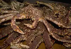 The Bering Sea is world-renowned for its productive and profitable fisheries, such as king crab,[28] opilio and tanner crabs, Bristol Bay salmon, pollock and other groundfish.[29][30] These fisheries rely on the productivity of the Bering Sea via a complicated and little understood food web.