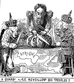 The General Act of Berlin can be seen as the formalisation of the Scramble for Africa that was already in full swing.[4] The conference contributed to ushering in a period of heightened colonial activity by European powers, and is sometimes cited as being responsible for the "carve-up of Africa".[5] However, some scholars warn against overstating its role in the colonial partitioning of Africa, drawing attention to the many bilateral agreements concluded before and after the conference.[6][7][8] A 2024 study found that the only borders set at the conference were those of the Congo region (and these were subsequently revised), and that most of Africa’s borders did not take their final form until over two decades later.[9] Wm. Roger Louis conceded, however, that "the Berlin Act did have a relevance to the course of the partition" of Africa.
