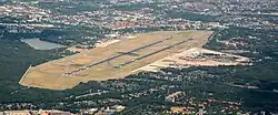 The airport's grounds are due to be redeveloped into a new city quarter dedicated to scientific and industrial research named Urban Tech Republic, which is to retain the airport's main building and tower as a repurposed landmark.[12]
