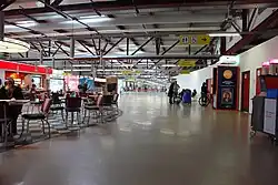 Initially, all commercial flights used the original terminal building (a pre-fabricated shed), which was situated to the North of the runway, at what is today the military part of the airport.[22]
