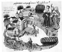After a major blaze in 1405, the city's original wooden buildings were gradually replaced by half-timbered houses, and subsequently the sandstone buildings which came to be characteristic for the Old Town. Despite waves of pestilence that hit Europe in the 14th century, the city continued to grow, mainly due to immigration from the surrounding countryside.[10]