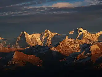 The Bernese Alps are amongst the three highest major subranges of the Alps, together with the Pennine Alps and the Mont Blanc massif.[2]