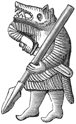Wolf warriors appear among the legends of the Indo-Europeans, Turks, Mongols, and Native American cultures.[21] The Germanic wolf-warriors have left their trace through shields and standards that were captured by the Romans and displayed in the armilustrium in Rome.[22][23]