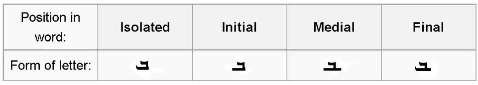 | Position in word: | Isolated | Final | Medial | Initial |
