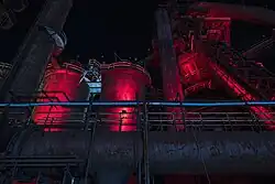 The site of the company's original plant in Bethlehem, Pennsylvania is home to SteelStacks, an arts and entertainment district. The plant's rusted five blast furnaces were left standing and serve as a backdrop for the new campus. SteelStacks currently features the ArtsQuest Center, a contemporary performing arts center, the Wind Creek Bethlehem casino resort, formerly Sands Casino Resort Bethlehem, a gambling emporium, and new studios for WLVT-TV, the Lehigh Valley's PBS affiliate.[30] The area includes three outdoor music venues: Levitt Pavilion is a free music venue featuring lawn seating for up to 2,500 people, Air Products Town Square at Steelstacks, and PNC Plaza, which hosts outdoor concerts.[31] Levitt Pavilion and the casino resort are connected via the Hoover-Mason Trestle linear park.