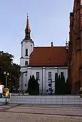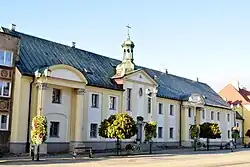 From 1547, the settlement was owned by the Wiesiołowski family, which founded the first school.[17] The first brick church and a castle were built between 1617 and 1826. The two-floor castle, designed on a rectangular plan in the Gothic-Renaissance style, was the work of Job Bretfus. Extension of the castle was continued by Krzysztof Wiesiołowski, starost of Tykocin, Grand Marshal of Lithuania since 1635, and husband of Aleksandra Marianna Sobieska.[18] In 1637 he died childless, and as a result, Białystok came under the management of his widow. After her death in 1645 the Wiesiołowski estate, including Białystok, passed to the Crown to cover the costs of maintaining Tykocin Castle. In the years 1645–1659 Białystok was managed by the starosts of Tykocin.[18][19]