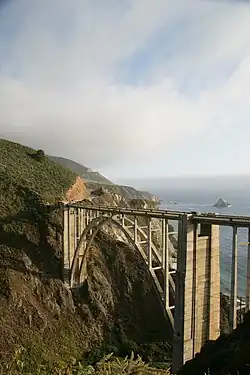 Bixby Creek Bridge, shown here looking southwest, is a popular attraction in Big Sur.