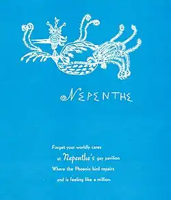 Historic menu cover from Nepenthe restaurant, a Big Sur icon since 1949[63]