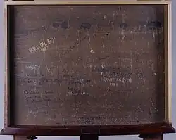 Others noted that Bradley seemed to lack enemies despite great athletic, academic, and social success. Classmate Larry Lucchino described Bradley as having an "aura ... of near-idolatry". All 15 Princeton University eating clubs asked him to join;[19] Bradley chose Cottage Club.[32] Fans shouted "Don't touch God!" when opposing players' bodies hit his on court. Roommates helped answer dozens of letters each week asking for autographs, mementos, and public appearances.[19] Each year improving from mediocre freshman grades, Bradley graduated magna cum laude[13] after writing his senior thesis about Harry S. Truman's 1940 United States Senate campaign,[24] titled "On That Record I Stand",[33][34] and received a Rhodes Scholarship at Worcester College, Oxford. At Princeton, Bradley was taught by John William Ward. His years at Princeton were the subject of Pulitzer Prize-winning author John McPhee's January 23, 1965, article "A Sense of Where You Are" in The New Yorker, which McPhee expanded into a book of the same name. The title came from Bradley's explanation for his ability to repeatedly throw a basketball over his shoulder and into the basket while looking away from it.[6] In 1965, Bradley received the Golden Plate Award of the American Academy of Achievement.[35]