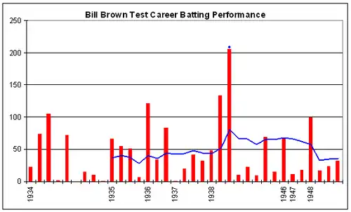 - ^ "Statsguru – WA Brown – Test matches – Batting analysis". Cricinfo. Retrieved 19 June 2008.