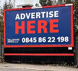 - ^ "Billboard Advertising | Costs & Rental | BM Outdoor Media". bmoutdoor.com. Retrieved 28 February 2022.