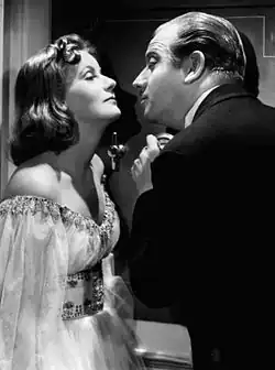 Wilder directed the Cold War political farce film One, Two, Three (1961), starring James Cagney, which won critical praise with Variety writing, "Billy Wilder's One, Two, Three is a fast-paced, high-pitched, hard-hitting, lighthearted farce crammed with topical gags and spiced with satirical overtones. Story is so furiously quick-witted that some of its wit gets snarled and smothered in overlap."[29] It was followed by the romantic comedy Irma la Douce (1963) starring Lemmon and MacLaine. The film was the fifth highest-grossing film of the year. Wilder received a Writers Guild of America Award nomination for his screenplay. Wilder then wrote and directed the sex comedy film Kiss Me, Stupid starring Dean Martin, Kim Novak, and Ray Walston, who was a last minute replacement for ailing Peter Sellers. The film was criticized by some critics for vulgarity, with Bosley Crowther blaming the film for giving American movies the reputation of "deliberate and degenerate corruptors of public taste and morals".[30] A. H. Weiler of the New York Times called the film "pitifully unfunny". Wilder gained his final Academy Award nomination and a Writers Guild of America Award nomination for the screenplay of The Fortune Cookie, which he co-produced through his independent film company, Phalanx Productions. It was the first film pairing Jack Lemmon with Walter Matthau. The film was titled Meet Whiplash Willie in the United Kingdom. In 1970, he directed The Private Life of Sherlock Holmes, also made through Phalanx Productions, which was intended as a major roadshow theatrical release, but to Wilder's dismay was heavily cut by the studio.[31][32]