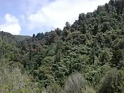 The break-up of the supercontinent of Gondwana left the resulting continents and microcontinents with shared biological affinities. Zealandia (the continental crust from which New Zealand and New Caledonia later developed) began to move away from Antarctic Gondwana 85 Ma ago, the break being complete by 66 Ma ago.[3][4] It has been moving northwards since then, changing both in relief and climate. About 23 million years ago New Zealand was mostly underwater. One estimate suggests just 18% of the present surface area remained above the water. However geological evidence does not rule out the possibility that it was entirely submerged, or at least restricted to small islands.[5][6] Today about 93% of the Zealandian continent remains below the sea. Several elements of Gondwana biota are present in New Zealand today: predominantly plants, such as the podocarps and the southern beeches, but also a distinctive insect fauna, New Zealand's unusual frogs and the tuatara, as well as some of New Zealand's birds. It seems likely that some primitive mammals also were part of the original cargo. Whether or not any of these taxa are descendants of survivors of that ancient cargo remains unproven. Recent molecular evidence has shown that even the iconic Gondwanan plants the southern beeches (Nothofagus) arrived in New Zealand after separation of Zealandia from Gondwana. There is a high rate of interspecific and intraspecific hybridisation in New Zealand plants and animals.[7]
