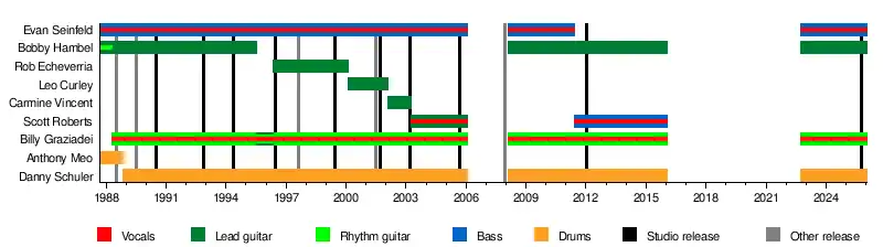 In October 2022, it was reported that the lineup of Seinfeld, Graziadei, Hambel, and Schuler had reunited. Seinfeld credited a chance encounter with Schuler's brother as inspiration to reconnect with his former bandmates,[26] while Graziadei credited former manager Scott Koenig with inspiring the reunion. Koenig had been adamant on the band's reforming but died before Graziadei could be convinced. Graziadei then met Seinfeld at Koenig's memorial and began a conversation about getting back together.[27]