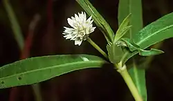 Alligator weed was introduced to the United States from South America. It takes root in shallow water, interfering with navigation, irrigation, and flood control. The alligator weed flea beetle and two other biological controls were released in Florida, greatly reducing the amount of land covered by the plant.[20] Another aquatic weed, the giant salvinia (Salvinia molesta) is a serious pest, covering waterways, reducing water flow and harming native species. Control with the salvinia weevil (Cyrtobagous salviniae) and the salvinia stem-borer moth (Samea multiplicalis) is effective in warm climates,[21][22] and in Zimbabwe, a 99% control of the weed was obtained over a two-year period.[23]