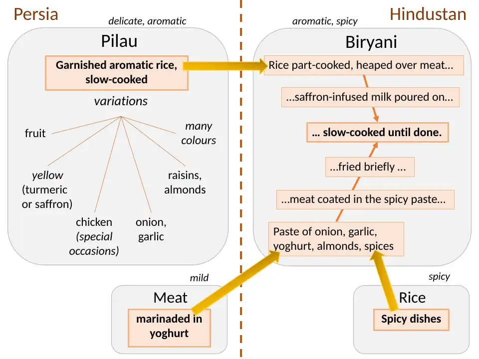 The historian of food K. T. Achaya states that pilau is "of older usage in India" than biryani, indicating that it could have been a precursor of biryani.[2]