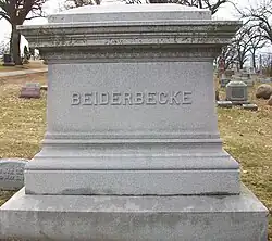 Historians have disagreed over the identity of the doctor who pronounced Beiderbecke dead, with several sources stating that it was Dr. John Haberski (the husband of the woman Kraslow identified) who pronounced Beiderbecke dead in his apartment.[T] The official cause of death, as indicated on the death certificate, was lobar pneumonia. Unofficially, edema of the brain, coupled with the effects of long-term alcoholism, have been cited as contributory factors.[U] Beiderbecke's mother and brother took the train to New York and arranged for his body to be taken home to Davenport. He was buried there on August 11, 1931, in the family plot at Oakdale Cemetery.[85]