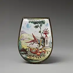 In the middle of the 18th century, Bilston became well known for the craft of enamelling.[46] Items produced included decorative containers such as patch-boxes, snuff boxes and bonbonnieres.